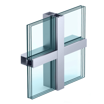 Полуструктурное остекление. Это сочетание прочности стоечно-ригельной системы и эстетической привлекательности структурного метода. Стеклопакеты крепятся к несущему профилю узкими прижимными штапиками, что минимизирует затемнение. Этот способ подходит для больших стеклопакетов и включает открывающиеся элементы.